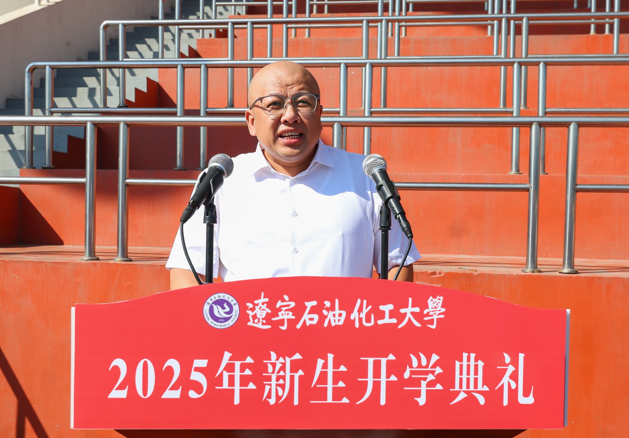 教师代表、“全国高校黄大年式教师团队”成员、辽宁省本科教学名师、石油化工学院教授龙文宇在发言中寄语新生。他希望同学们能明确方向、专注学业,在治学中沉淀,在奋进中成长,让品格与学识共进,让青春与理想同行。
