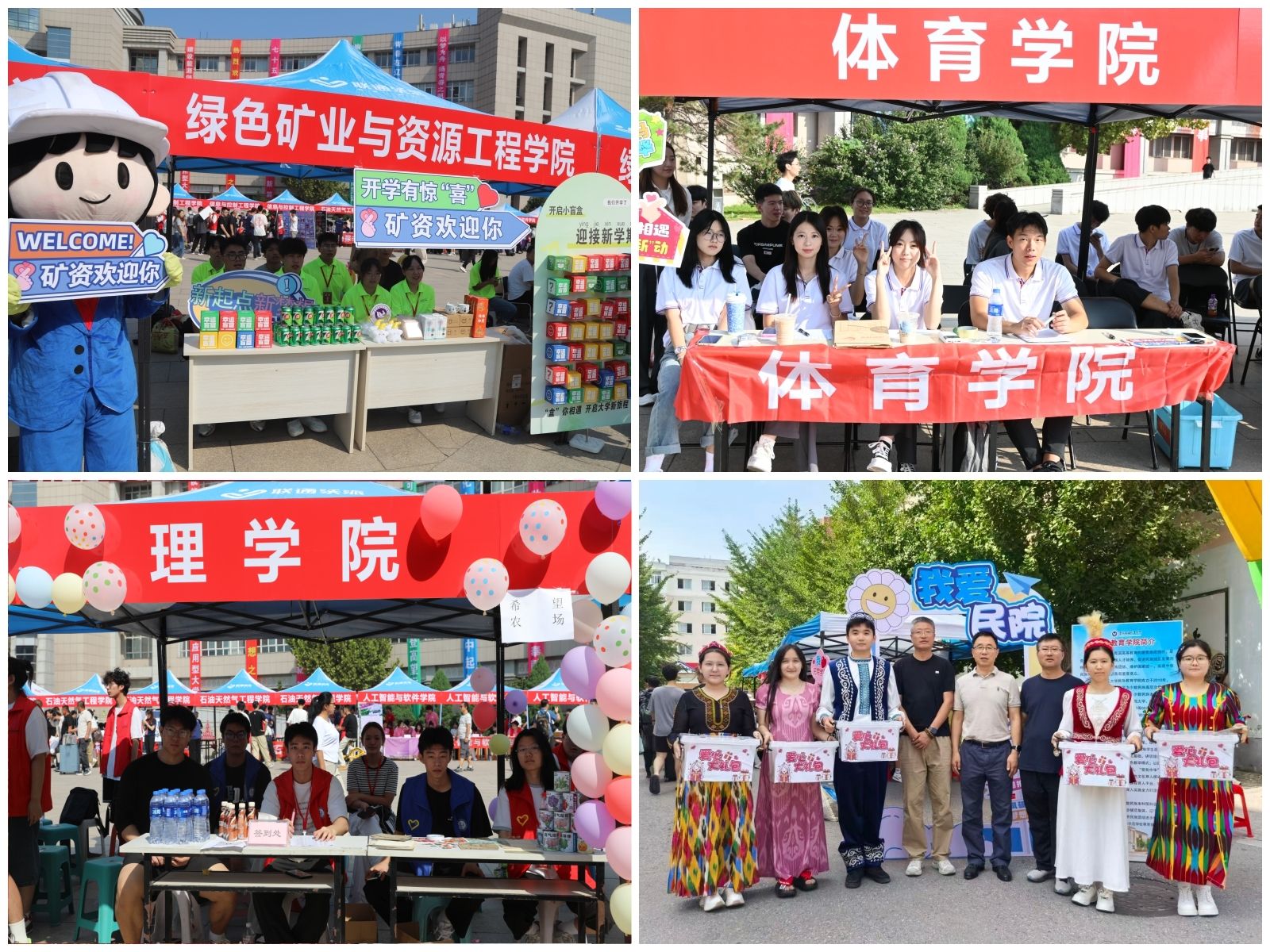 凭特色服务传递人文关怀——绿色矿业与资源工程学院的盲盒墙前排起长队,新生开启幸运惊喜的同时,也收下学长学姐的暖心寄语;理学院备好清凉饮品,在消解初秋燥热的同时,打破“理科只有公式定理”的刻板印象,尽显细腻关怀;体育学院的定制文化衫,彰显“强健体魄、砥砺意志”精神内核;民族教育学院打造的“民族文化迎新驿站”更具特色,身着传统服饰的学长学姐展示民族手工艺品与民俗图片,让新生触摸传统文化温度的同时,萌发“传承民族文化、共筑团结情谊”的信念。