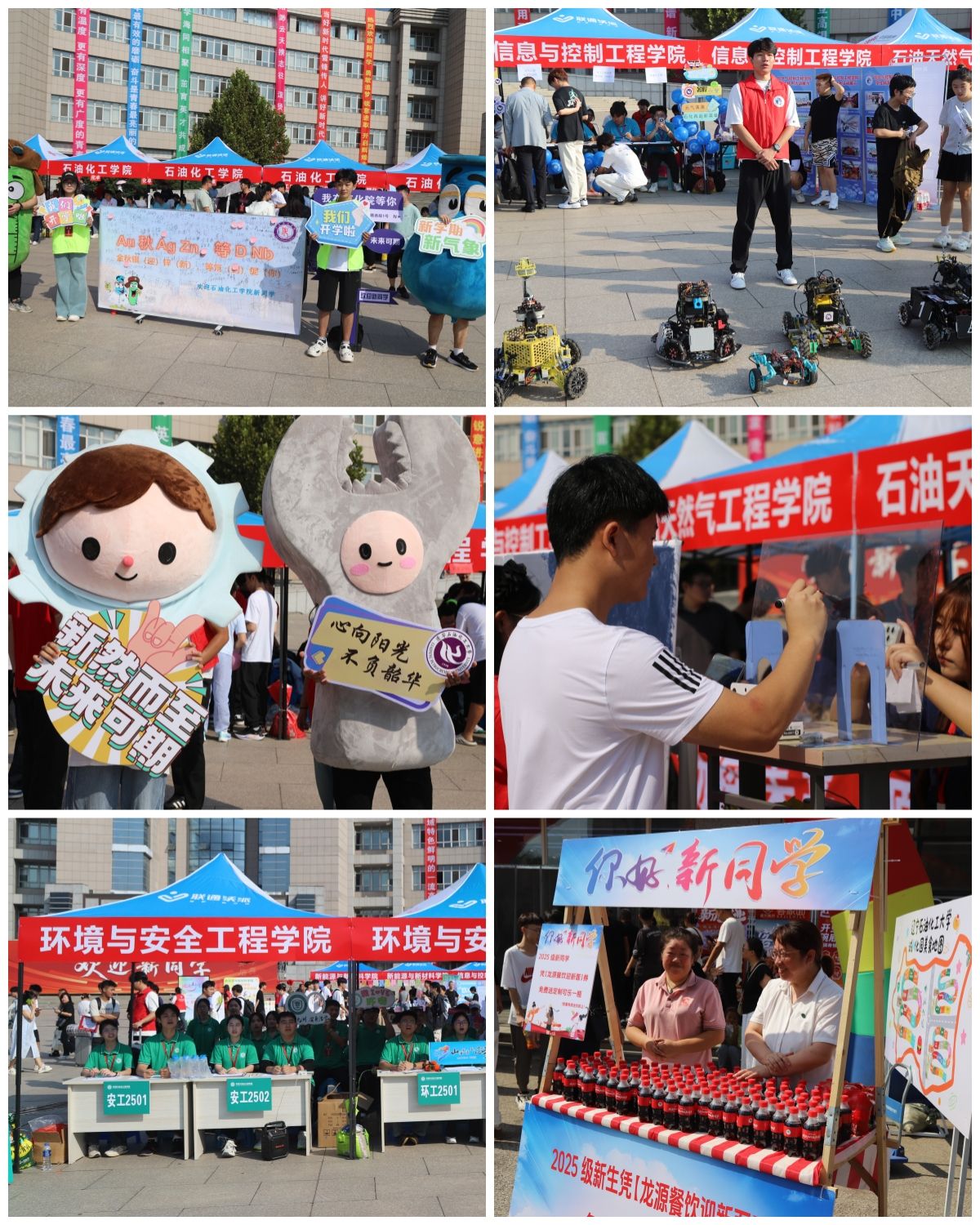 以具象化展示传递专业温度——石油化工学院、机械工程学院的志愿者穿着“油瓶、滴管”“齿轮、扳手”造型的憨态人偶穿梭人群,把石油精神化作可触碰的温暖记忆;信息与控制工程学院的智能机器人展区前,灵活摆动的黑色机械臂与青春笑脸相映,勾勒出工科专业的科技魅力;环境与安全工程学院高光谱相机、多模组相机等专业设备的亮相,点燃了新生探索环境监测、守护生态安全的热忱;石油天然气工程学院的数字油画里,暗藏着油田晨曦、海上钻井平台等行业元素,让新生在笔触起落间触摸石油行业的壮阔图景。
