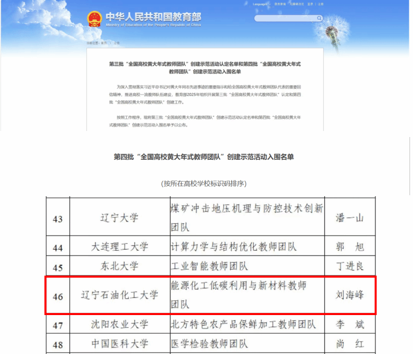 近日,教育部正式公布第四批“全国高校黄大年式教师团队”创建示范活动入围名单,我校“能源化工低碳利用与新材料教师团队”成功入选。此次全国共200个高校教师团队入围、辽宁省仅6所高校上榜。这既是国家对高校教师队伍“心有大我、至诚报国”崇高精神的肯定,更是对高校服务国家重大战略能力的殷切期许——我校团队的入选,标志着学校在能源领域“育人+科研”协同服务国家需求的实践中,跻身国家级优秀教师团队行列,为东北全面振兴、国家能源安全与“双碳”目标落地再添“抚油动能”。